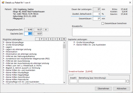 Die Zeitdauer eines Einsatzes kann problemlos verändert werden. Auch der Inhalt eines Einsatzes kann durch Hinzufügen oder Löschen einer oder mehrerer Leistungen verändert werden.